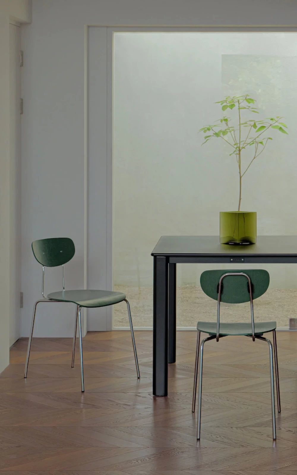 The Alter Chair, co-created with Rareraw for its 10th anniversary, features a versatile design suited to various spaces, combining metal and wood elements. A unique aspect is its modular wood seat and backrest, allowing users to personalize the chair to their style.