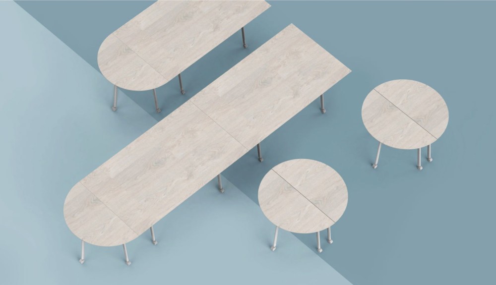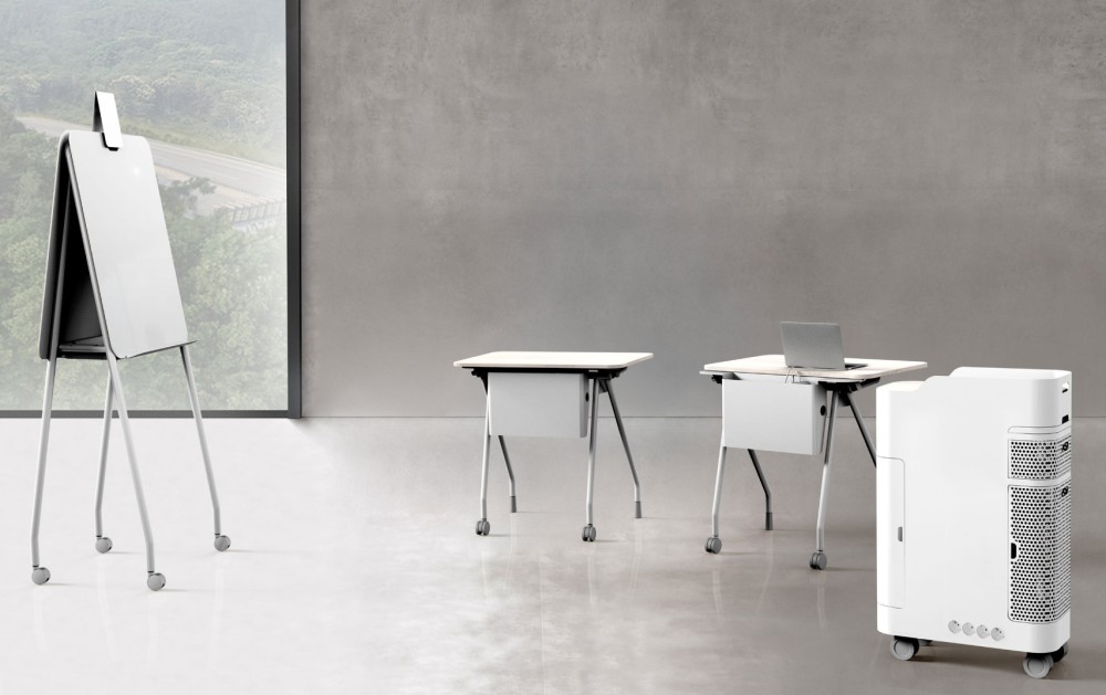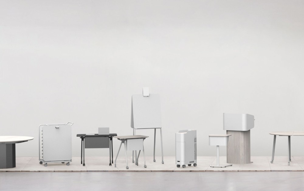 The furniture series developed for Chuncheon Training Center Connect One is designed to suit Naver's work and educational environment. This series includes 12 products: a single desk, a 1.5-person desk, a team carrier, a small smart table, a small smart table carrier, a whiteboard, a whiteboard carrier, detachable tables in A/B/C types, a podium, and a meeting room table.