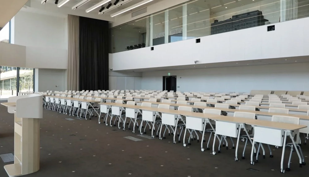 Reflecting the nature of IT work, where frequent use of laptops, tablets, and smartphones is common, a sliding cable management solution has been integrated. Additionally, mobile carriers and whiteboard carriers were designed, along with a height-adjustable podium for presenters to support both team collaboration and individual work.