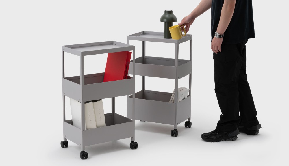 The second item is a trolley designed for versatile use in kitchens, living rooms, offices, and children’s rooms. User behavior analysis revealed distinct preferences for organizing items on different shelves, that smaller items are usually placed on top, while larger, heavier items are stored below. This inspired a new height-adjusted trolley design for enhanced usability.