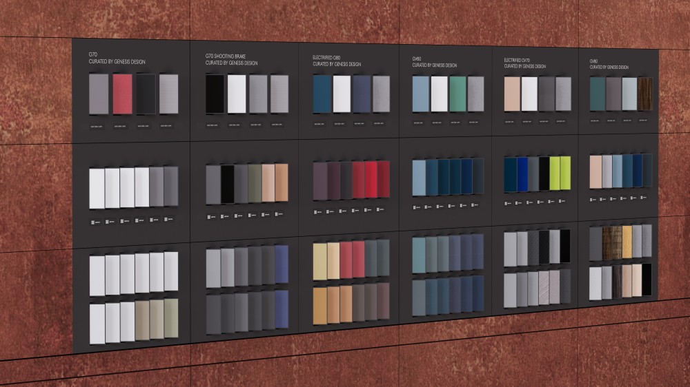 The Genesis CMF Wall, showcased at London’s Battersea Power Station, was designed to immerse customers in the refined aesthetics of Korean colors, materials, and finishes (CMF) for automotive interiors. The wall’s structure draws inspiration from traditional Korean architecture, emphasizing straight, squared forms.