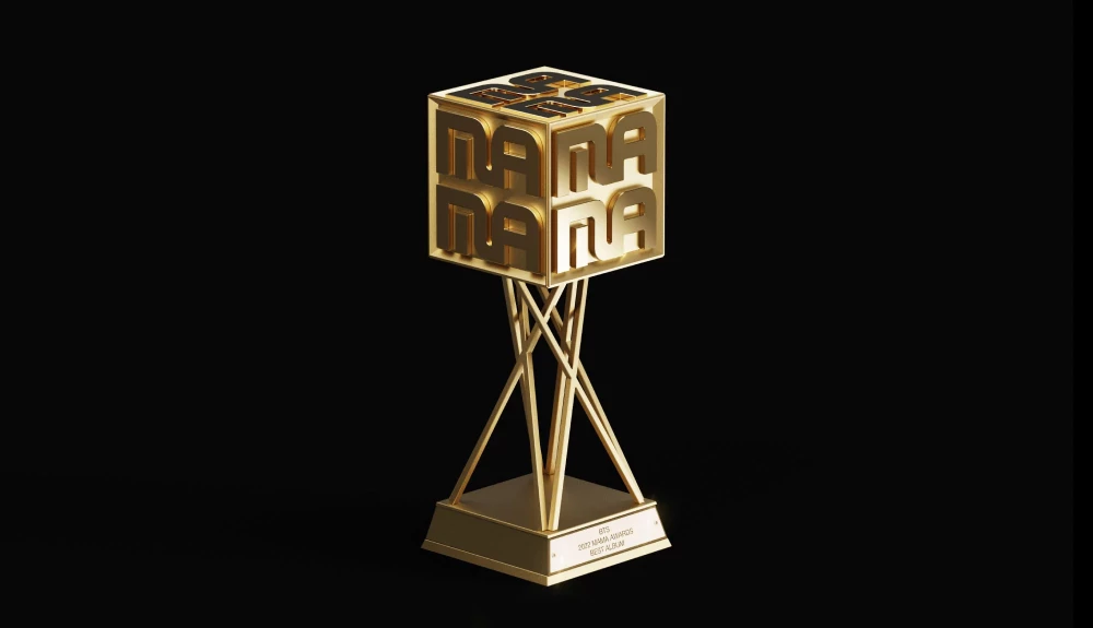 The 2022 Mnet Asian Music Awards (MAMA) trophy takes inspiration from transmission towers and satellites. The straight elements of the transmission tower symbolize growth and ascension, while the satellite represents the connection between fans and artists.