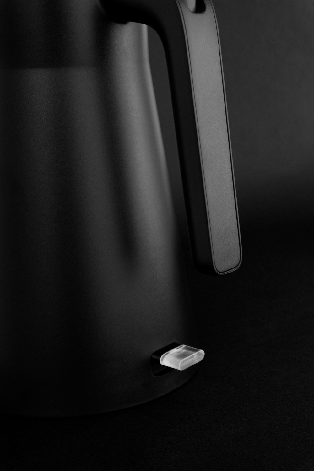 The wireless kettle was designed for versatile use beyond the kitchen, blending seamlessly into various environments. Inspired by the essence of a kettle, the design prioritized ease of use, simple cleaning, and consistent functionality across different settings. Key design elements include a wide spout, a flared cylindrical body, and a single-sided handle. To emphasize the analog essence, these components were refined into a minimal and cohesive silhouette.