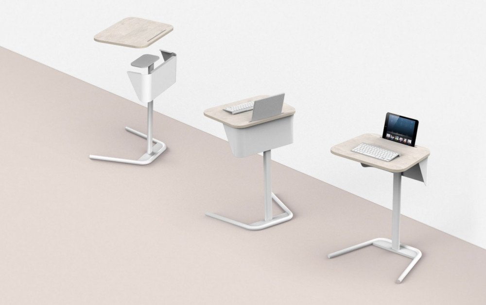 The furniture series developed for Chuncheon Training Center Connect One is designed to suit Naver's work and educational environment. This series includes 12 products: a single desk, a 1.5-person desk, a team carrier, a small smart table, a small smart table carrier, a whiteboard, a whiteboard carrier, detachable tables in A/B/C types, a podium, and a meeting room table.