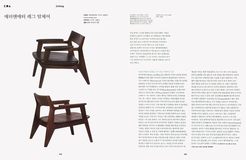 매년 정체성, 제품, 리빙, 그래픽, 디지털 미디어, 공간 등 여섯 가지 부문에서 개최되는 코리아 디자인 어위드는 창의성, 조형미 그리고 클라이언트에 대한 유익한 효과를 중점으로 하며, SWNA의 매터앤매터는 한국 부티크 가구 시장에서 큰 영향을 미친 점이 높이 평가되어 수상하게 되었다.