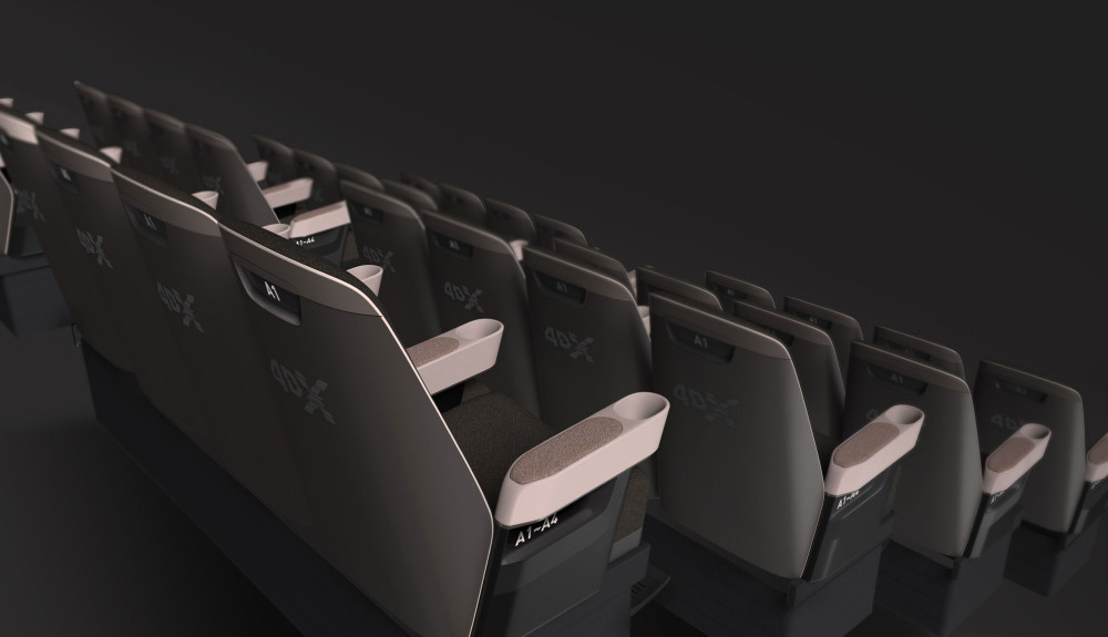 The development of theater seating for CGV 4DX's 4D movies was based on a year of research and consumer feedback, encompassing the entire process from brand concept to product production. The seats feature a "Dynamic Comfort" design, characterized by dynamic armrest shapes and accent colors.