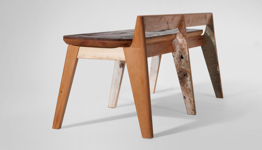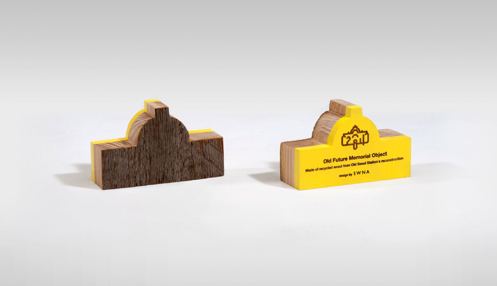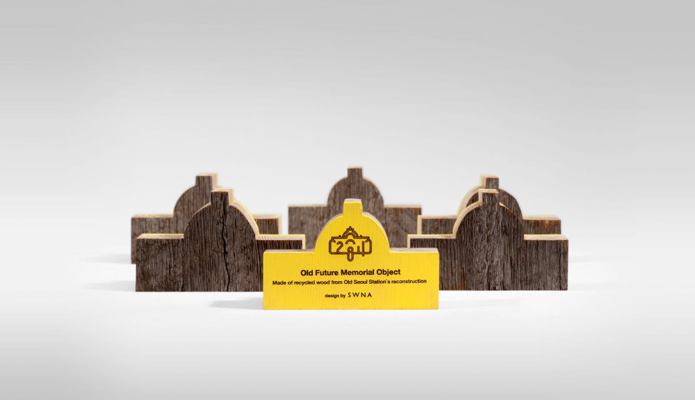 Matter & Matter furniture design focuses on materials, using geometric shapes and curves to emphasize their characteristics. The wood sourced from the dismantling of Seoul Station bears beautiful traces of time and culture. These materials were reinterpreted and integrated into the Leg Furniture Series. Additionally, offcuts from the furniture production were CNC-machined to create a miniature silhouette of the entire station.