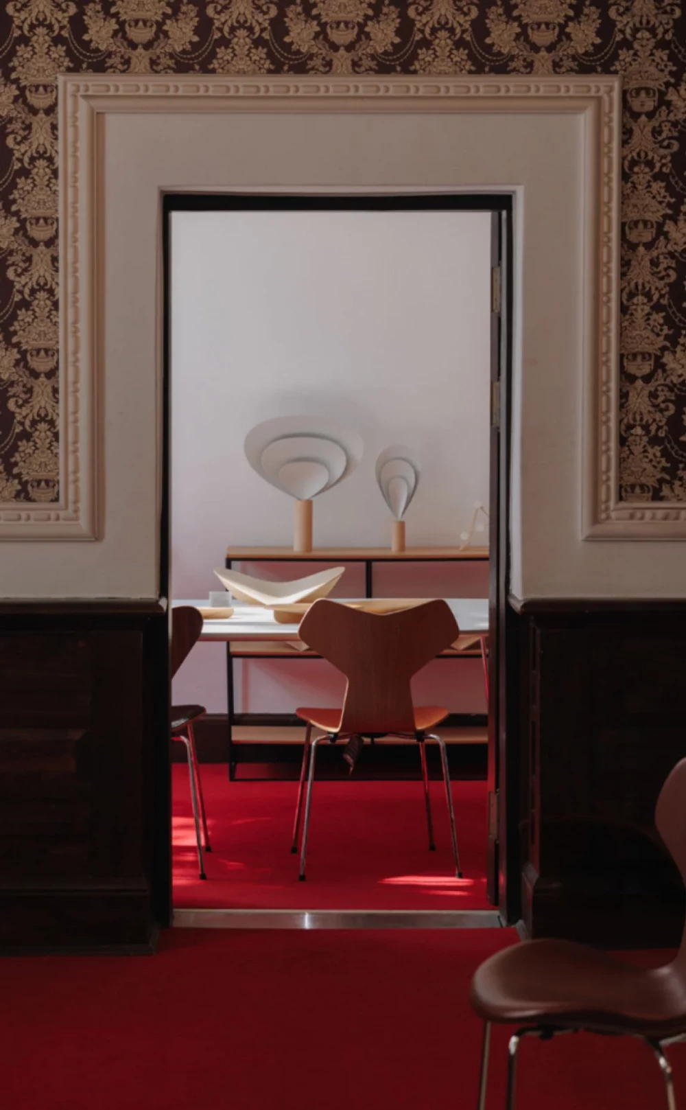 The Drop Light was created for the Korea Project at the Fritz Hansen 150th Anniversary Exhibition in Seoul. Designer Sukwoo Lee investigated the intersection of his design preferences, Korean aesthetics, and Fritz Hansen, emphasizing straight lines, curves, contrast, and balance while reflecting on the theme of 'Eternal Beauty.'