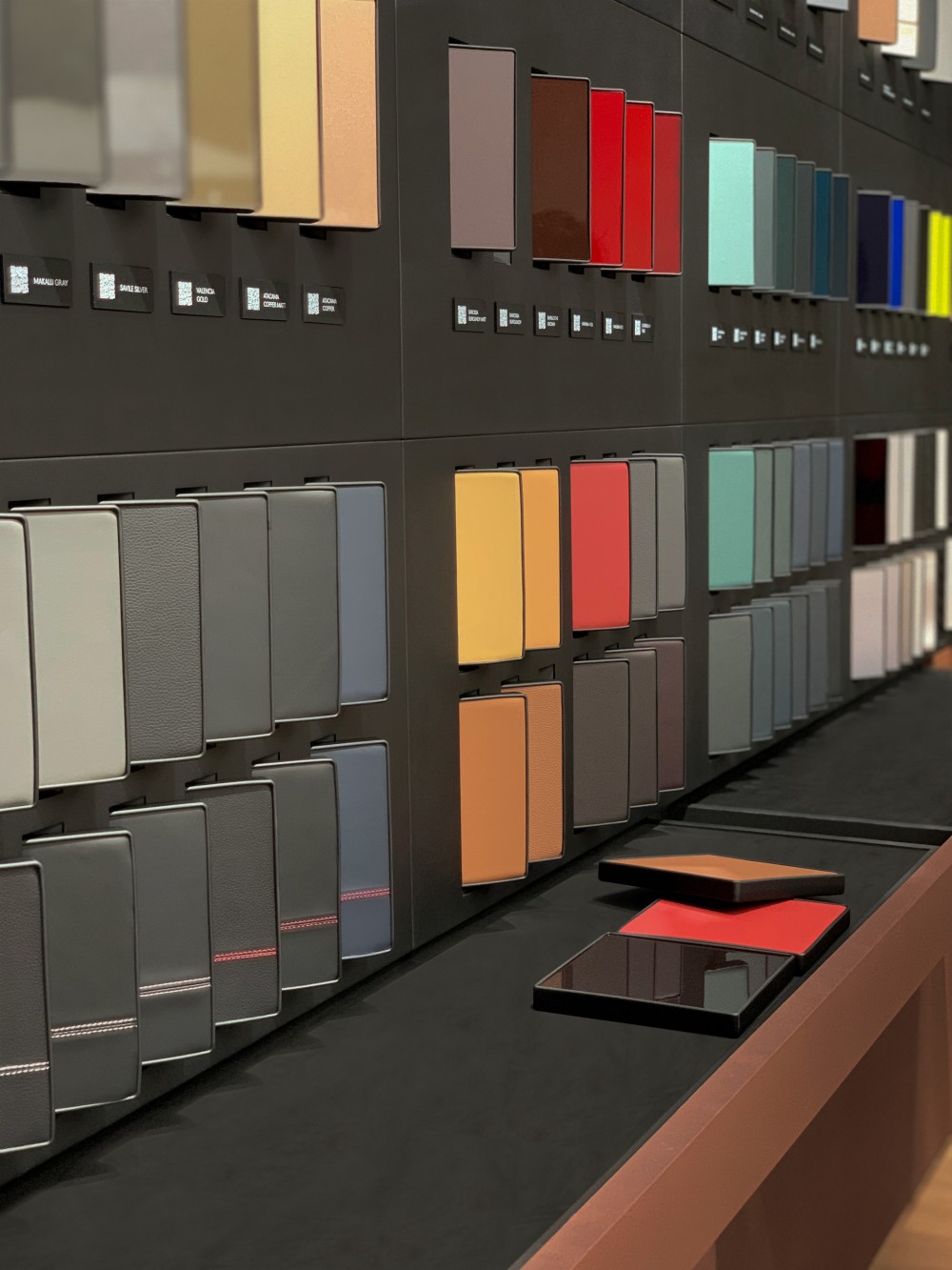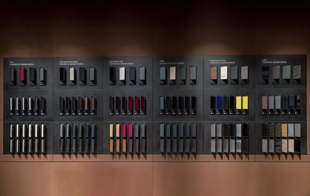 Customers can use material chips to create personalized combinations of exterior and interior colors, visually conceptualizing their custom cars. Additionally, by scanning QR codes linked to over 20 exterior color videos, visitors can immerse themselves in Genesis's CMF design and innovative technology.