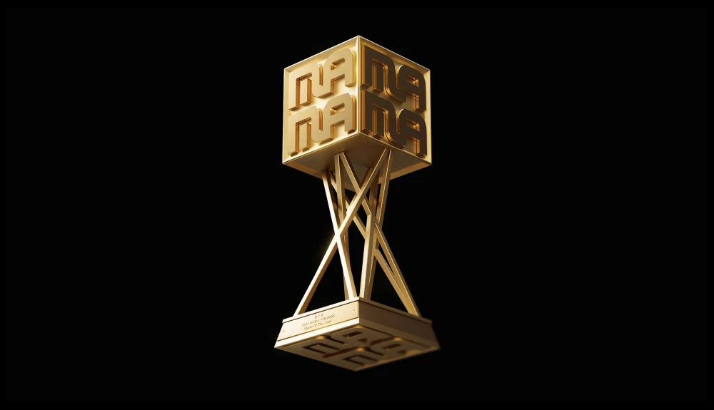 The 2022 Mnet Asian Music Awards (MAMA) trophy takes inspiration from transmission towers and satellites. The straight elements of the transmission tower symbolize growth and ascension, while the satellite represents the connection between fans and artists.