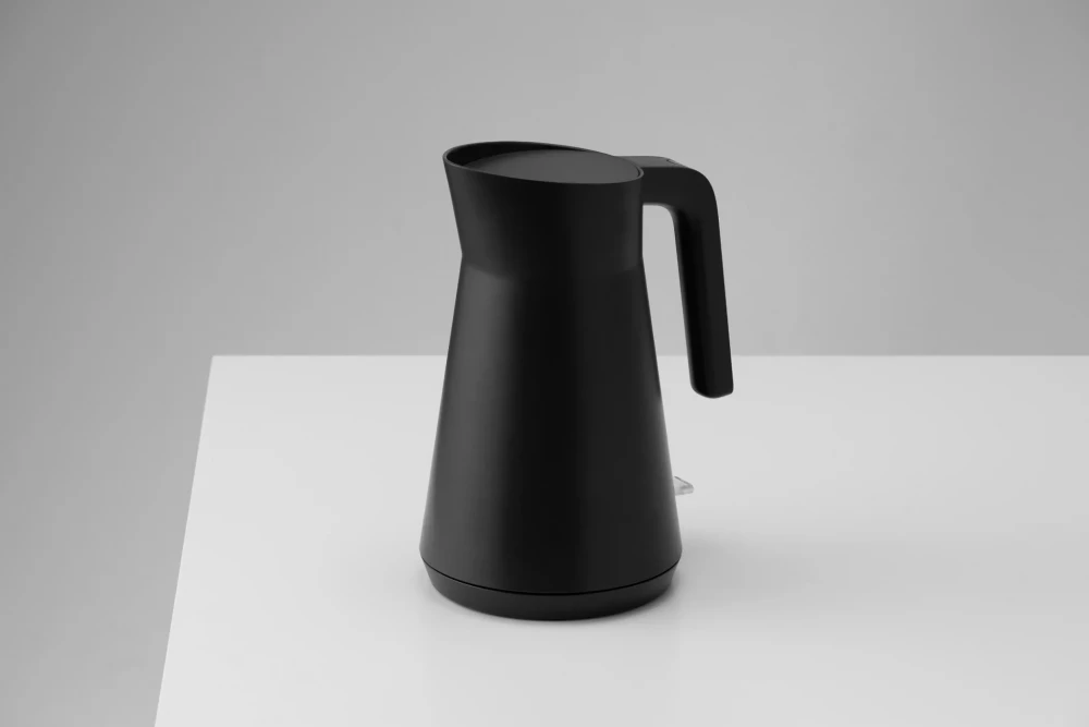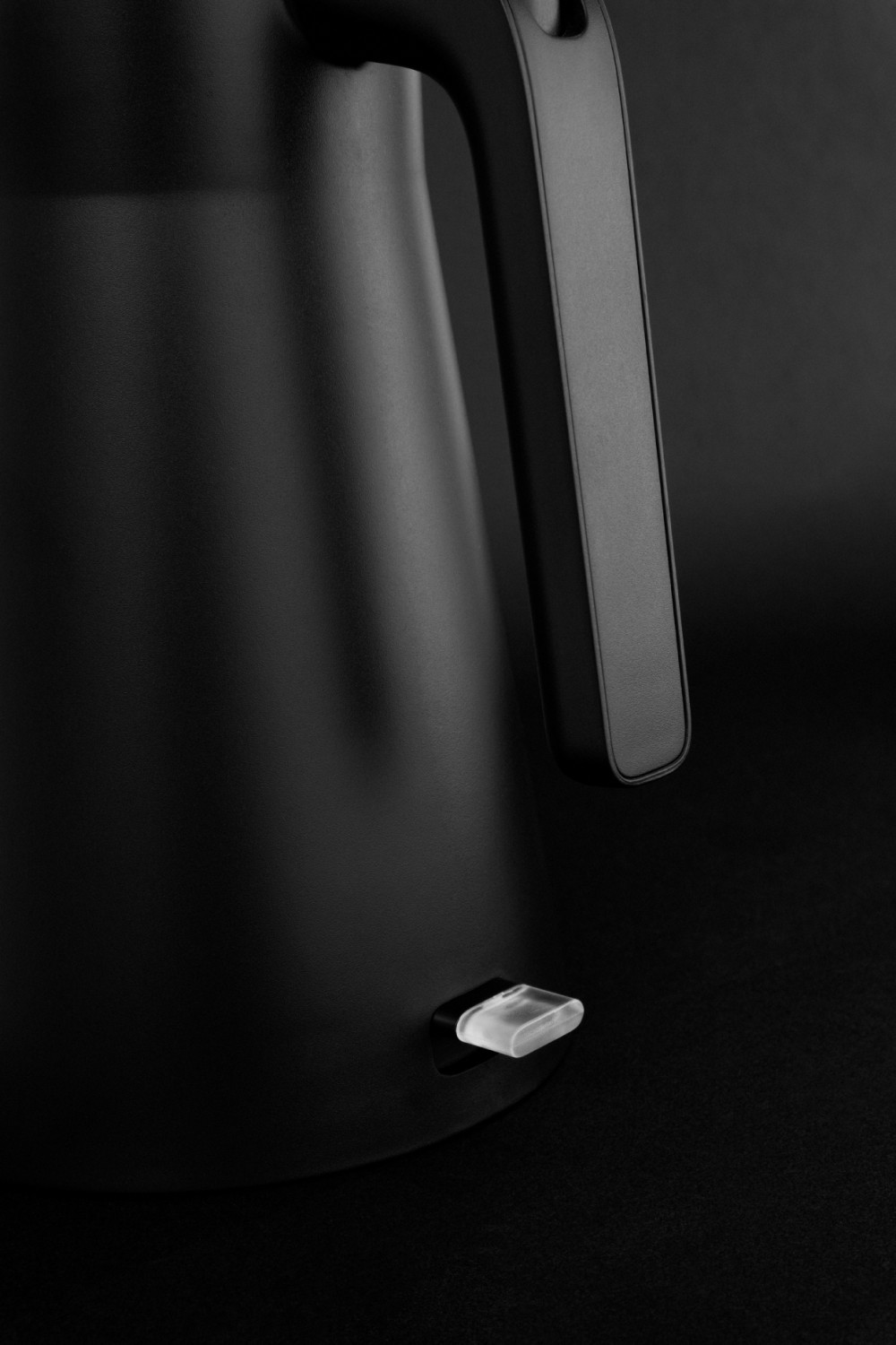 The wireless kettle was designed for versatile use beyond the kitchen, blending seamlessly into various environments. Inspired by the essence of a kettle, the design prioritized ease of use, simple cleaning, and consistent functionality across different settings. Key design elements include a wide spout, a flared cylindrical body, and a single-sided handle. To emphasize the analog essence, these components were refined into a minimal and cohesive silhouette.