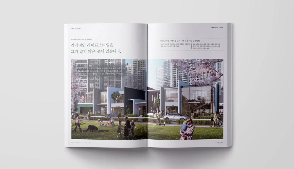 The proposal incorporated business cards, cardholders, and pen holders to emphasize the brand’s elevated image. Concepts such as ‘The Natural Nobility’ were communicated concisely through a magazine-style sales catalog, designed to present Prugio’s lifestyle in an accessible yet refined manner.
