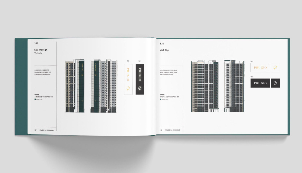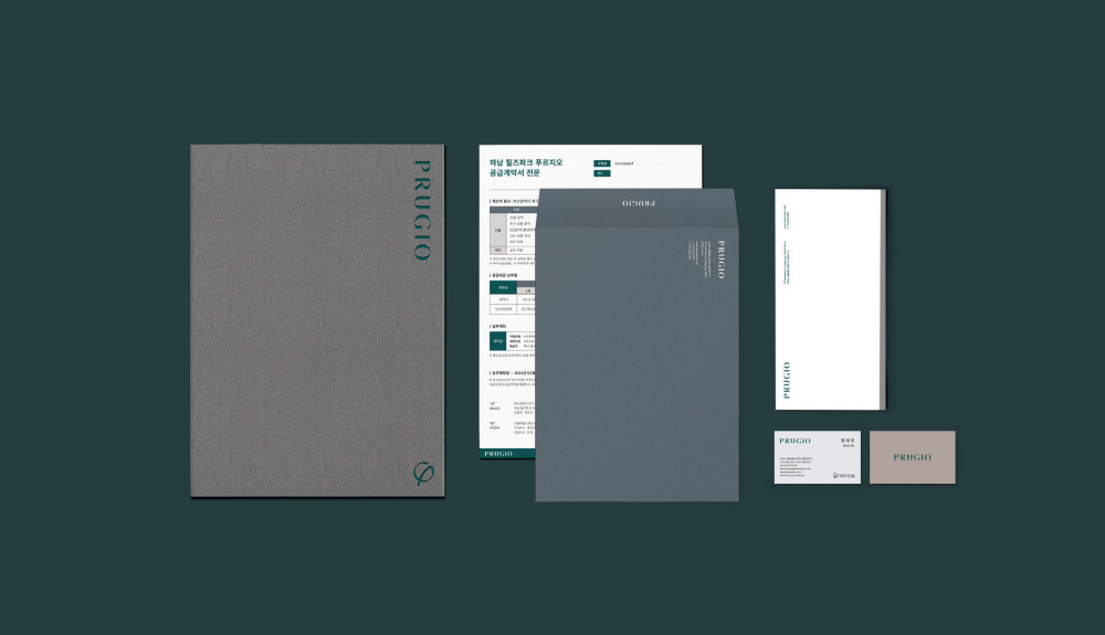 The reimagined Brand Identity (BI) features a design inspired by gentle breezes, using British Green to convey elegance. In addition, a new character was designed along with the typeface-based logo, visually expressing the brand tradition of Prugio. Collaborations with the S/O Project ensured the consistency of the BI, as it is integrated into visual elements like business cards, model houses, and construction barriers. Even small details, such as keyboxes and smart keys, were designed to enhance the premium experience, and the Prugio logo and characters were naturally placed throughout the apartments to create a sense of everyday pride.