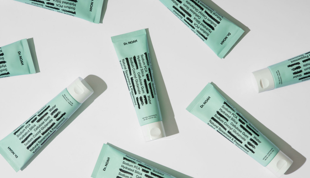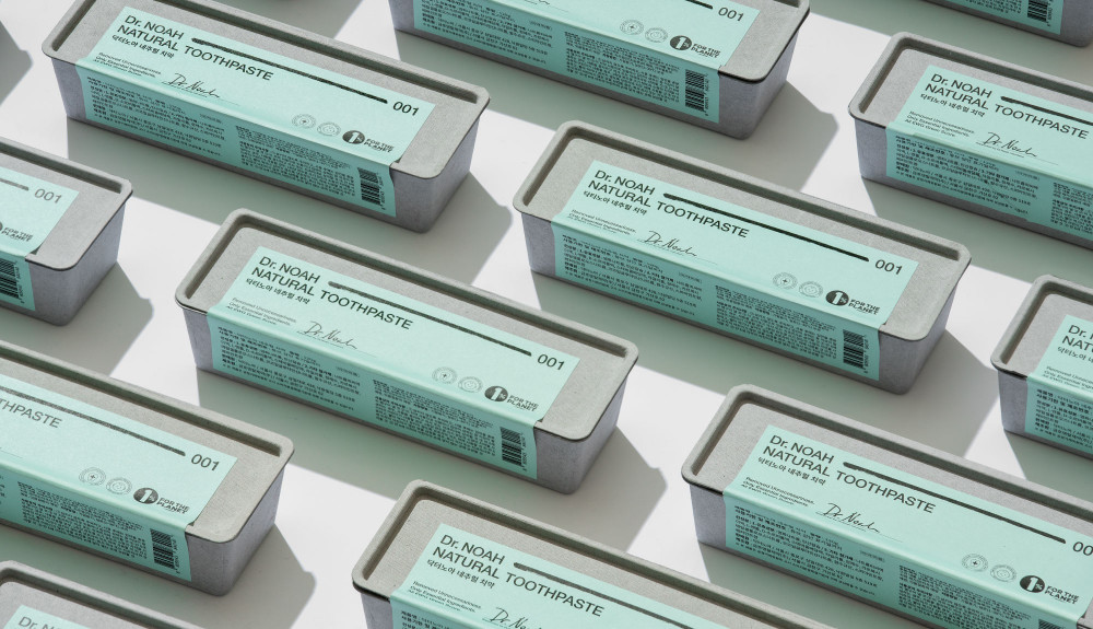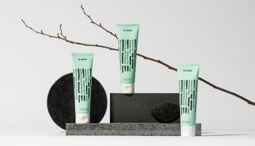Dr.NOAH toothpaste reflects the brand’s philosophy of natural oral care, created by a dentist. The design, inspired by a "decisive dental chart," highlights the exclusion of unnecessary ingredients and focuses on natural and naturally derived components.