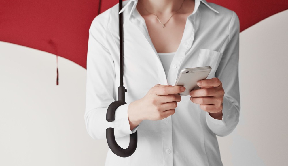Inspired by the question, 'How could we make using a smartphone easier on rainy days?' this umbrella features a subtly modified handle that can be worn on the wrist. While retaining the look of a typical umbrella, the design allows for hands-free use, making it convenient for multitasking in wet conditions.