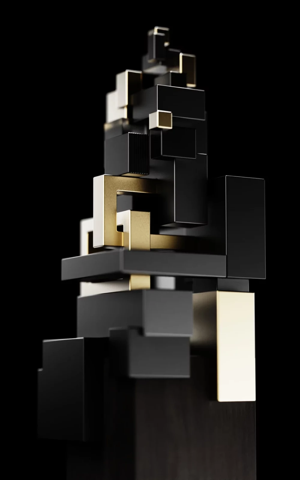 The trophy takes inspiration from the structural principles of blockchain, embodying countless fractal patterns symbolizing distributed ledgers and hash values, intricately interlinked like a chain. At its core, a solid sculptural form engraved with the Upbit logo firmly supports the structure, visually expressing Upbit’s unwavering philosophy of trust and security.