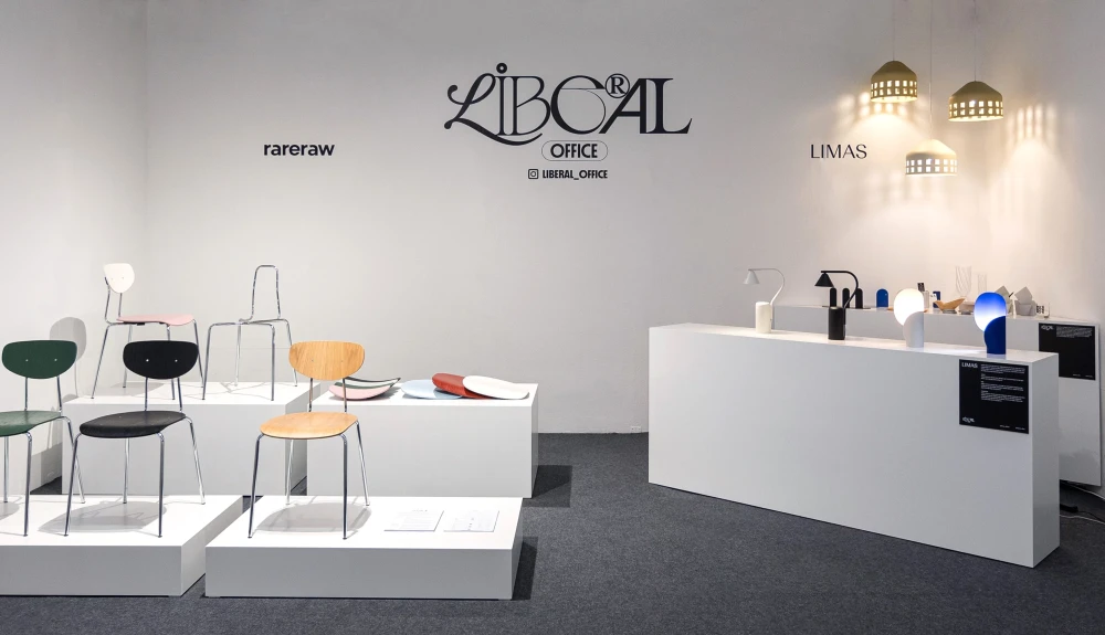 이곳에서 리버럴 오피스는 LIMAS, RARERAW와 각각 콜라보한 조명과 의자, 그리고 다양한 리버럴 오피스 제품들을 선보였다.