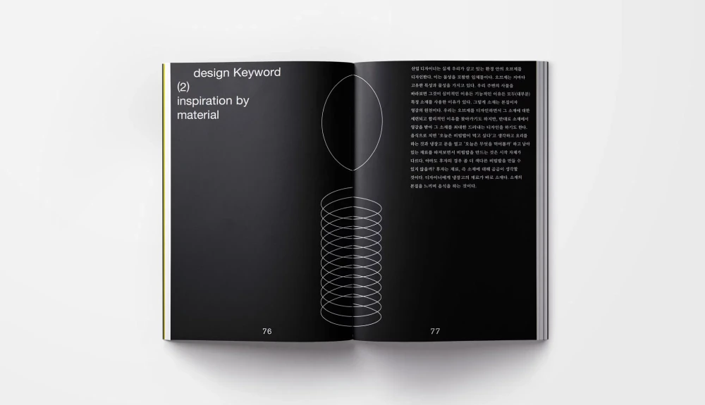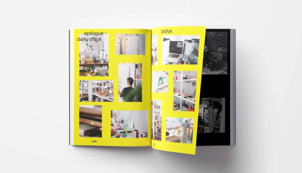 SWNA의 아이디어 스케치와 구현 과정, 재료 선정과 기법 탐구, 결과물을 찍은 다양한 사진과 이미지들이 담겨 있으며, SWNA가 생각하는 디자인에 필요한 7가지 핵심을 엿볼 수 있다.